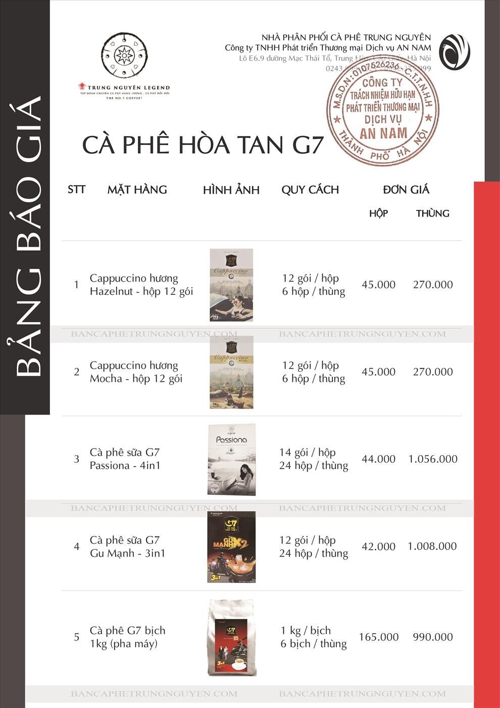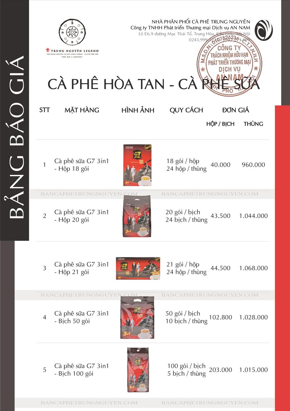 GIÁ CÀ PHÊ HÒA TAN G7 TRUNG NGUYÊN