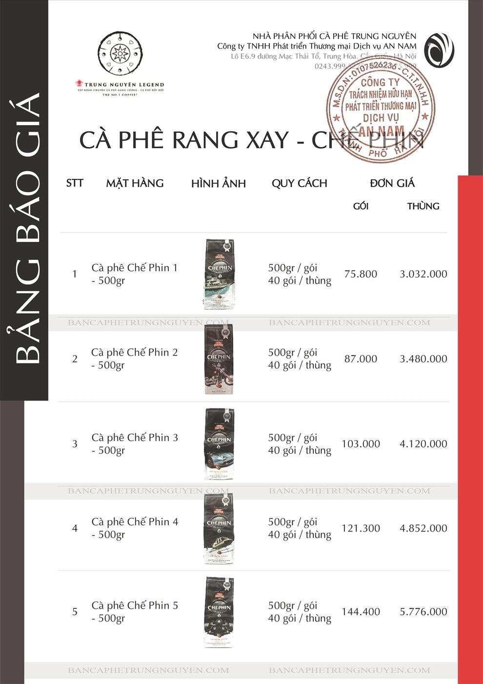 GIÁ CÀ PHÊ CHẾ PHIN TRUNG NGUYÊN