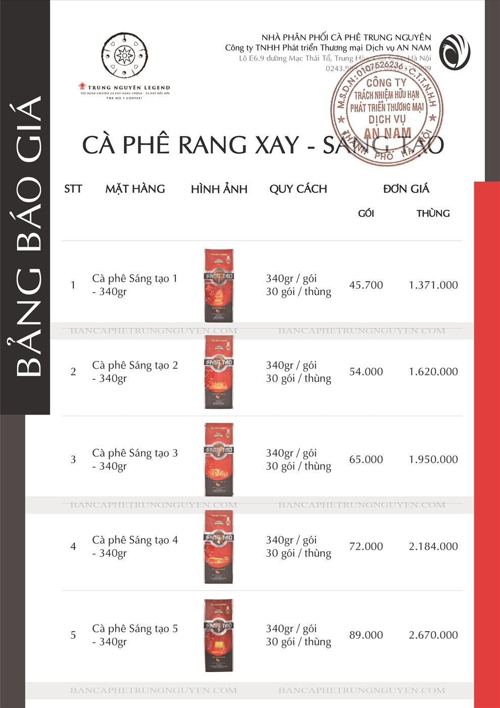 GIÁ CÀ PHÊ SÁNG TẠO TRUNG NGUYÊN
