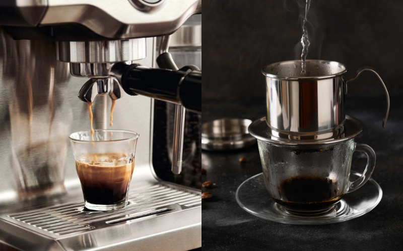 So sánh cà phê pha phin và cà phê pha máy